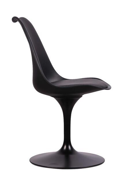 Upea tulppaanin muotoinen Dylan-ruokapöydän tuoli! Tuoli on pyörivä ja sen pehmustettu istuin tekee siitä hyvän istua. Jalka on kestävää metallia, Istuinosa polyproneeni muovia ja verhoilu pu-nahkaa.