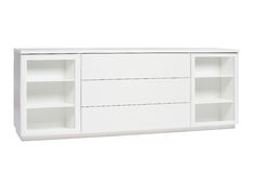 Kotimainen moderni ja pelkistetty leveä vitriini ovilla