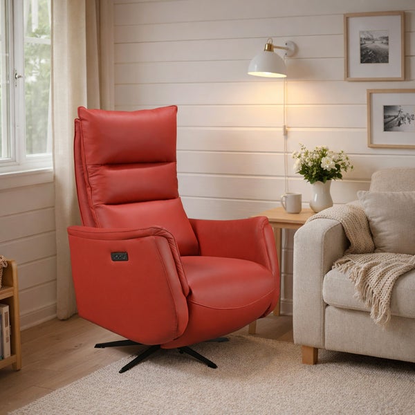Laadukas sähkötoiminen reclinertuoli aidolla nahalla!